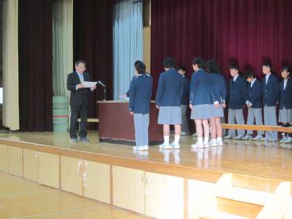 その後、新本部役員の認証式、各クラスの学級役員の認証式がありました。