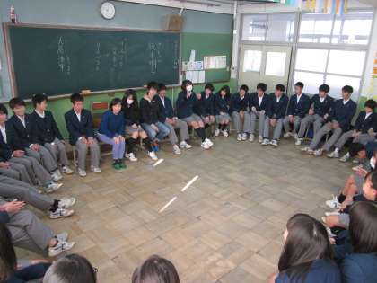 劇団衛星のプロの方に来ていただき、特別授業として、演じることのおもしろさや表現することの楽しさを教えていただいています。