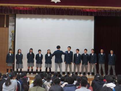 本日午後から行われた小学生向けのオープンスクールの締めくくりは、生徒会本部執行部による学校紹介でした。この学校紹介は、生徒会本部執行部のメンバーが長い時間をかけて準備して発表したものです。小学生に伝える内容、伝え方、劇の台本、全ての準備を全て自分たちで考えました。小学生のみなさんに太秦中学校の良さを伝えたい。そんな思いでいっぱいの生徒会本部執行部の人たちです。