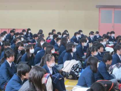 3年生は今日の6時間目体育館で事前指導を受けました。