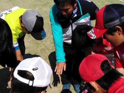 横からの強風のため、ボールが風に流され、両方のペアが苦しむ展開。