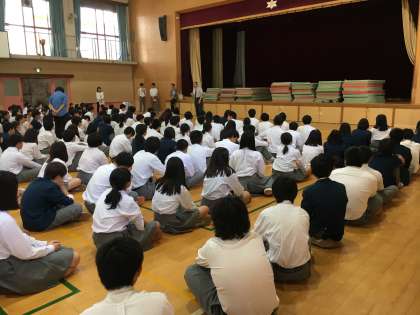 最初に出張中の学校長に変わり、教頭先生よりお話していただきました。