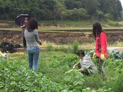 ぽつりぽつりと雨粒が落ちてくる中、体験学習が始まりました。