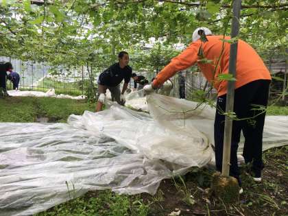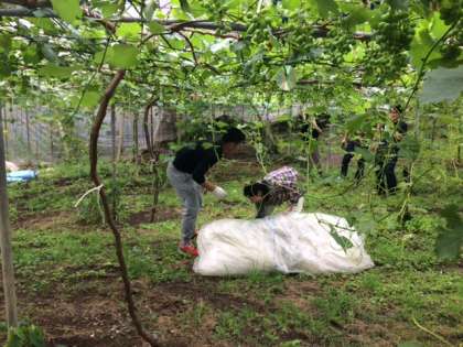 ぶどう菜園で体験中です。