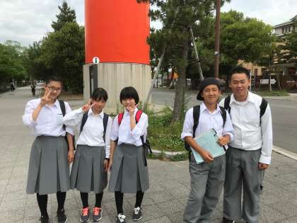 1年校外学習、平安神宮大鳥居前より。