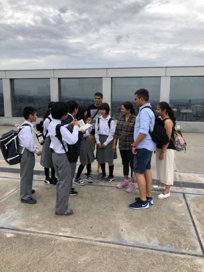 外国の方にインタビュー中です。習った英語を使って頑張ってます。