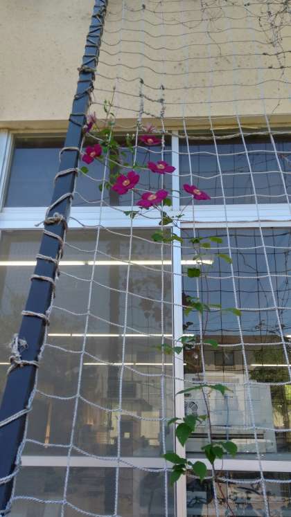 職員室の北側で紫色で咲いています。