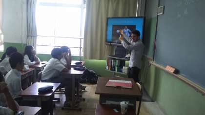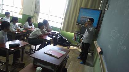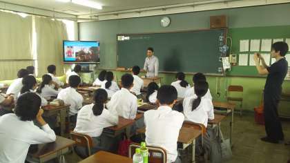 3年6組ではアルゼンチンのタバト先生から、アルゼンチンの民族、食文化、気候、言語などを教えてもらいました。知らないことがたくさんあったようで、生徒全員が食い入るように先生に注目し、交流を楽しみました。