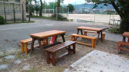 今年は、机の補修2台、新しいいすを8脚作っていただきました。