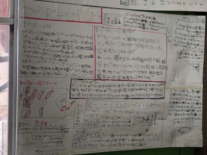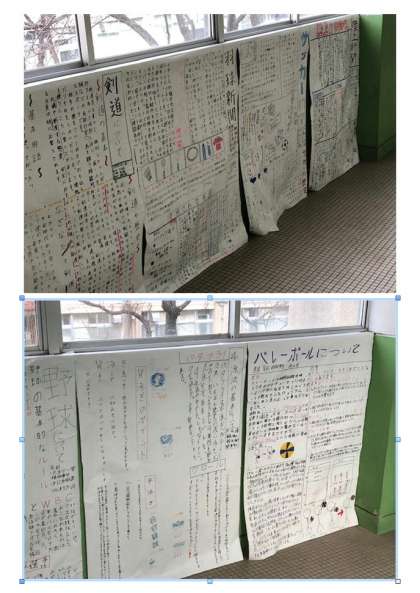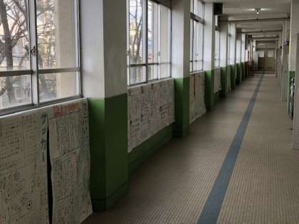 1年生の廊下に作成した壁新聞が掲示してありました。