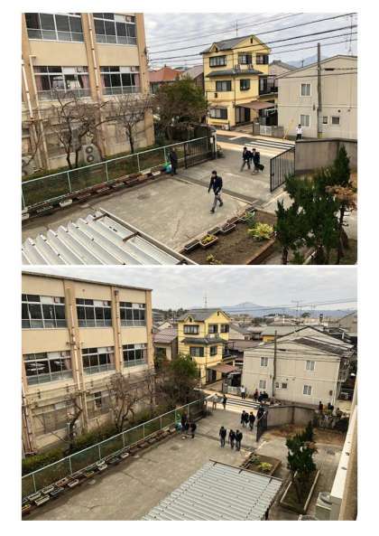 南校舎の2階・3階から登校の様子を撮ってみました。