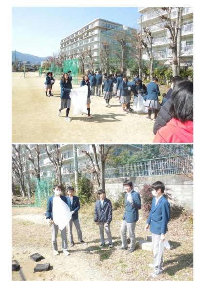 3Cの美化安全員会の取組は。いこいの広場・グランドの草むしりです。