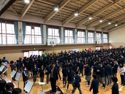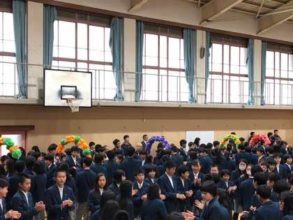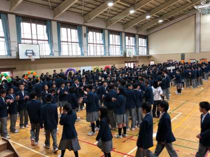 最後は2,3年生が花道を作って,その中を1年生が通っていきました。