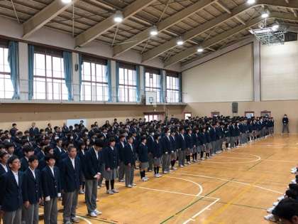 1年生の前で、2,3年生が校歌を披露しました。