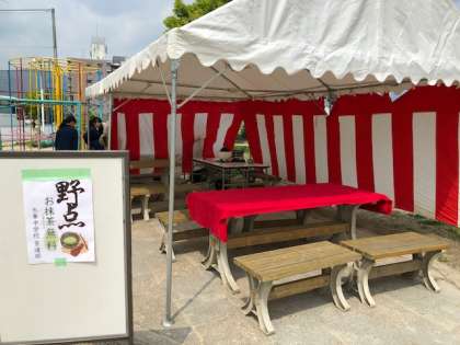 茶道部は野点を開き,来られた方に和菓子とお茶でもてなしをしました。
