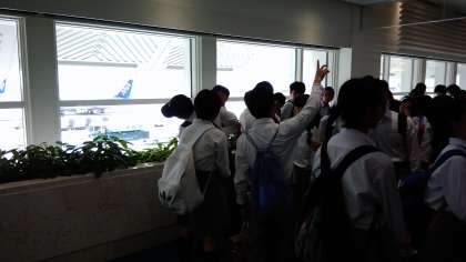 ただ今、大きな荷物を預け、機内に乗り込む準備です。