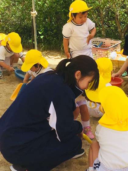 一緒に元気いっぱい走り回ったり,砂場でいろいろ作ったりして楽しんでいました。