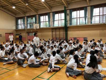 チャレンジ体験で職場体験をしたことを1年生に伝えるポスターセッションについて説明を受けました。これから、その準備に入っていきます。