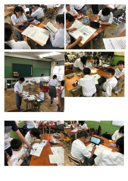 1年生は2年生のポスターセッションを聞く前に、職業について調べています。
