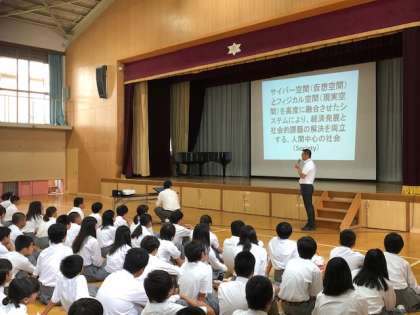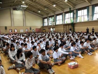 1つはこれからの未来がどうなっていくのか、またそのためにどういう力を付けていかなければならないか、そして、そのために自らから考え行動し、協働できる生徒の育成を学校目標にしたという話と命の大切さの話をしました。生徒はしっかり聞いていました。