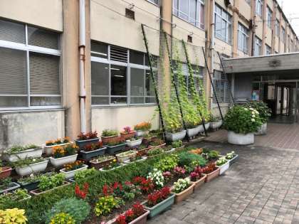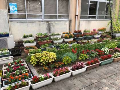 きれいな植物を学校にいっぱいにと、種から育てたり、小さなうちから育てています。