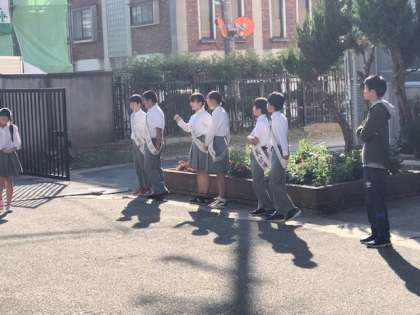 さっそく、朝、校門に集まり、挨拶運動を兼ねて自分をアピールしていました。