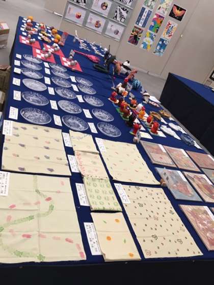 京都市幼児・児童・生徒作品展及び姉妹都市交歓作品展に、美術の授業で制作した3年生の「消しゴムハンコの手ぬぐい」8点、2年生の「靴のスケッチ6点」を出品しています。ぜひご覧ください。