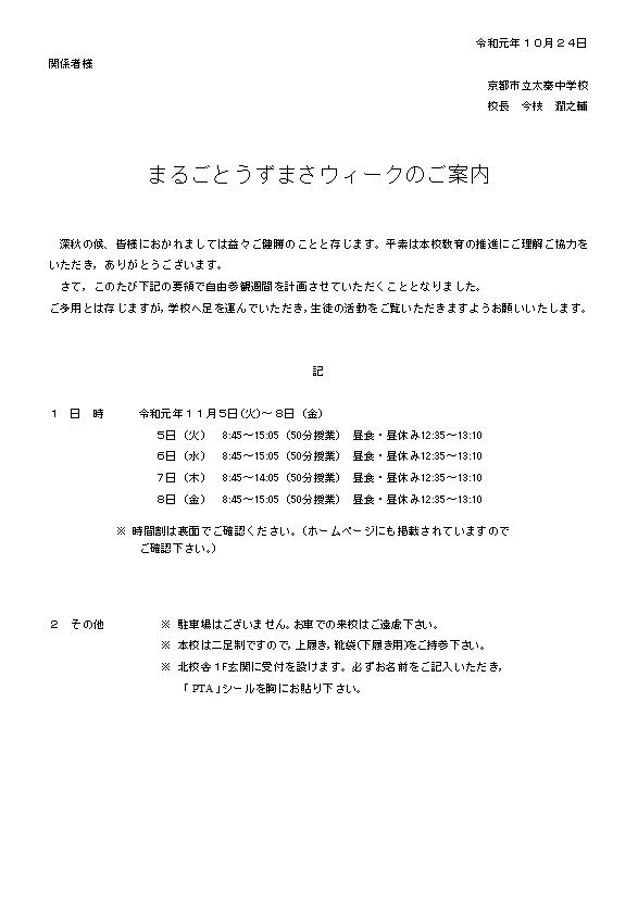 11月5日(火)〜11月8日(金)まで、まるごとうずまさウィーク行います。