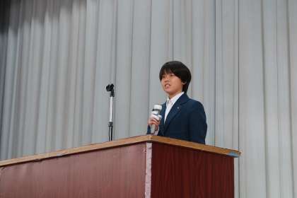 新生徒会長の挨拶。
