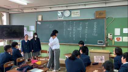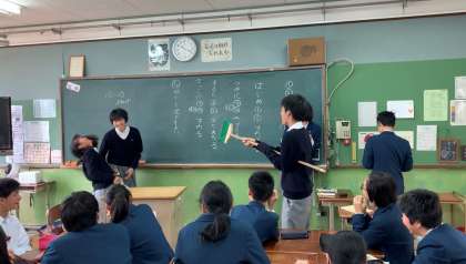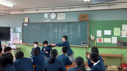 1時間目には表現力トレーニング。その成果を発揮すべく,2時間目はグループごとに分かれて,寸劇を行いました。