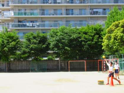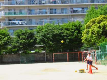 保健体育科のK先生によると3年生男子は最高で40m近く、女の子は30m近く投げるとのこと。