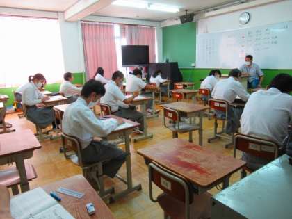 今日は、3年生が国社数の学習確認プログラム。テストの一日です。残りの理英は明日。ガンバレ、3年生!
