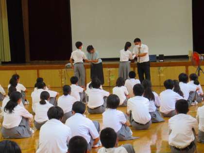 1学期最終日、1年生の1学期締めくくり集会がありました。