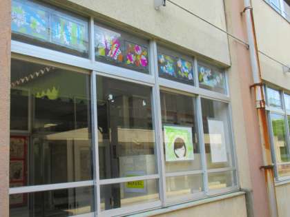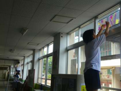 そして、ついに北校舎1F廊下&校長室前のステンドグラスが完成しました。