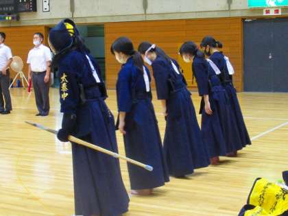 鴻ノ巣山運動公園市民体育館では、京都府中学生剣道大会が行われました。本校からは、女子剣道部が出場しました。試合は団体戦形式で、最初に予選リーグを行い、1位校が決勝トーナメントに進みます。
