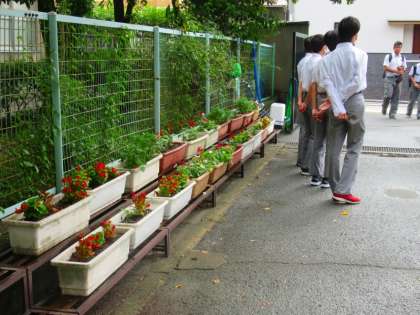 昨日から元気なあいさつが校門に響き、美化安全委員会で準備してくれた花たちと一緒に、登校してきたみんなを清々しい気持ちにしてくれています。(写真から元気な声が聞こえるでしょ!)