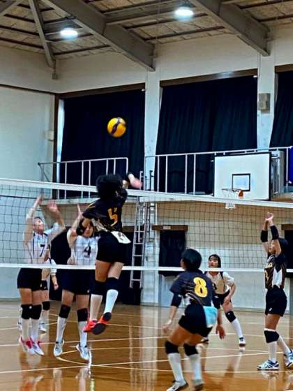 試合は一進一退。1セット目は23-25.大接戦を落としてしまいました。このまま相手のペースになってしまうのか?と心配された2セット目。彼女たちは踏ん張りました。徐々にミスが減り、いつものペースを取り戻し始めました。そして、25-21で2セット目を奪取!最終の3セット目は、2セット目の勢いそのままに、15-6で勝利!