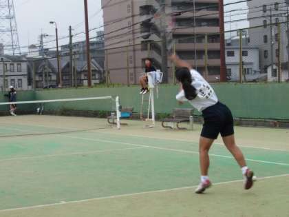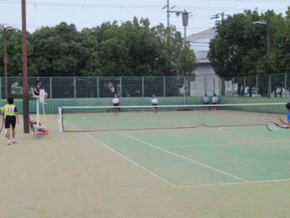 西院テニスコートは、オムニコートと呼ばれる人工芝のコートです。オムニコートになれるために、勧修寺公園のテニスコートなどで練習をして、対策を積み重ねて試合に臨みました。