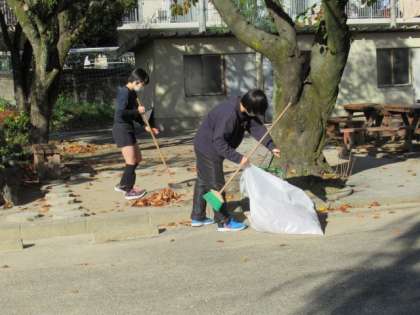 今日学校に来ると、校内もそうですが、校門前の落ち葉もたくさんあるので、掃除をしました。やっぱりなかなか大変で、