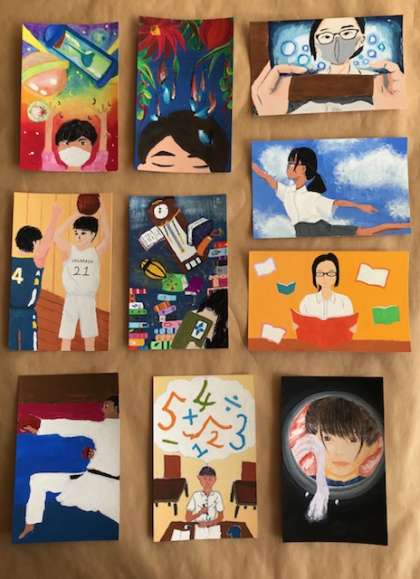 では、工夫を凝らした「私を表す色50色」「自画像」を、ごゆっくりお楽しみください!