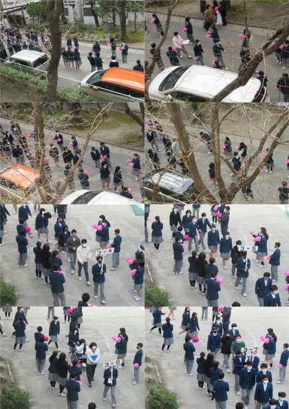 そのとき、1年生は花道を、2年生は密になってはいけないので、教室で拍手を送りました。