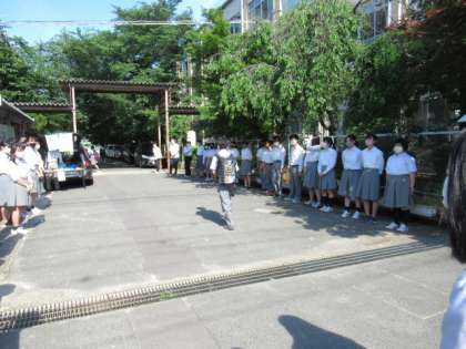 6月度あいさつ運動の締めくくりは、美化安全・図書委員会です。