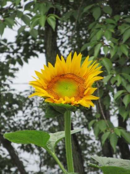 ついにあのひまわりが大輪の花を咲かせています。7/3土〜4日の雨でついに開花したのです。このひまわりは、実は2年前にここ太中いこいの広場の花壇で大きく育ったひまわりの孫の代に当たります。2年前のひまわりの種が、去年のひまわりに。そして、去年のひまわりの種が、今年のひまわりなのです。そのせいもあってか、ホント大きく育ったこと!