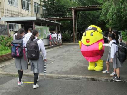 その中で、うずたまくんが率先してあいさつ運動に取り組んでくれています。
