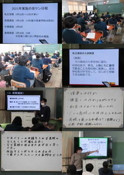 3年生は,先週進路懇談を行いました。2年生も,あと1年するとこの時期を迎えます。そのときに,入試制度のことを知らずに進路を選べませんから,今のうちに少しずつ理解していきましょう。