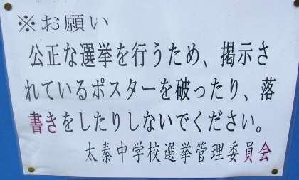 生徒会本部執行部役員選挙改選が,10月21日に行われます。選挙運動が始まりました。来期の太秦中学校を引っ張っていく,リーダーの選挙です。