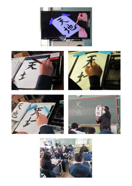 1年国語の授業では、書写に取り組んでいました。今日の字は「天地」。