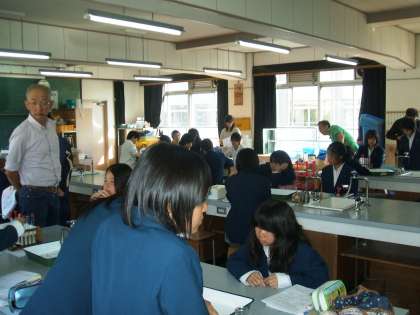 来年度から,新しい学習指導要領が完全実施になります。太秦中学校では,授業力の向上をめざして,校内研究授業を行っています。今日は理科・家庭科・英語科の授業研究です。すべての教員が三つに分かれて授業を参観し,その後協議会を開いて,より良い授業の創造に向けて論議を深める予定です。