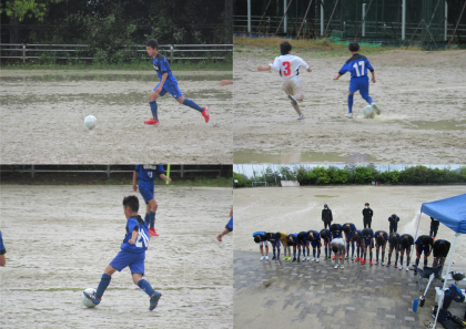 悪天候、そして湖のようなグラウンドで、いつものように明るく平常心を大切にしたサッカー部でした。