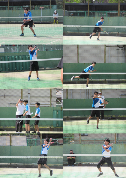 男子ソフトテニス部は、全市大会個人戦予選トーナメントを行いました。先日の雨天のため順延になり、今日は西院テニスコートでの試合となりました。